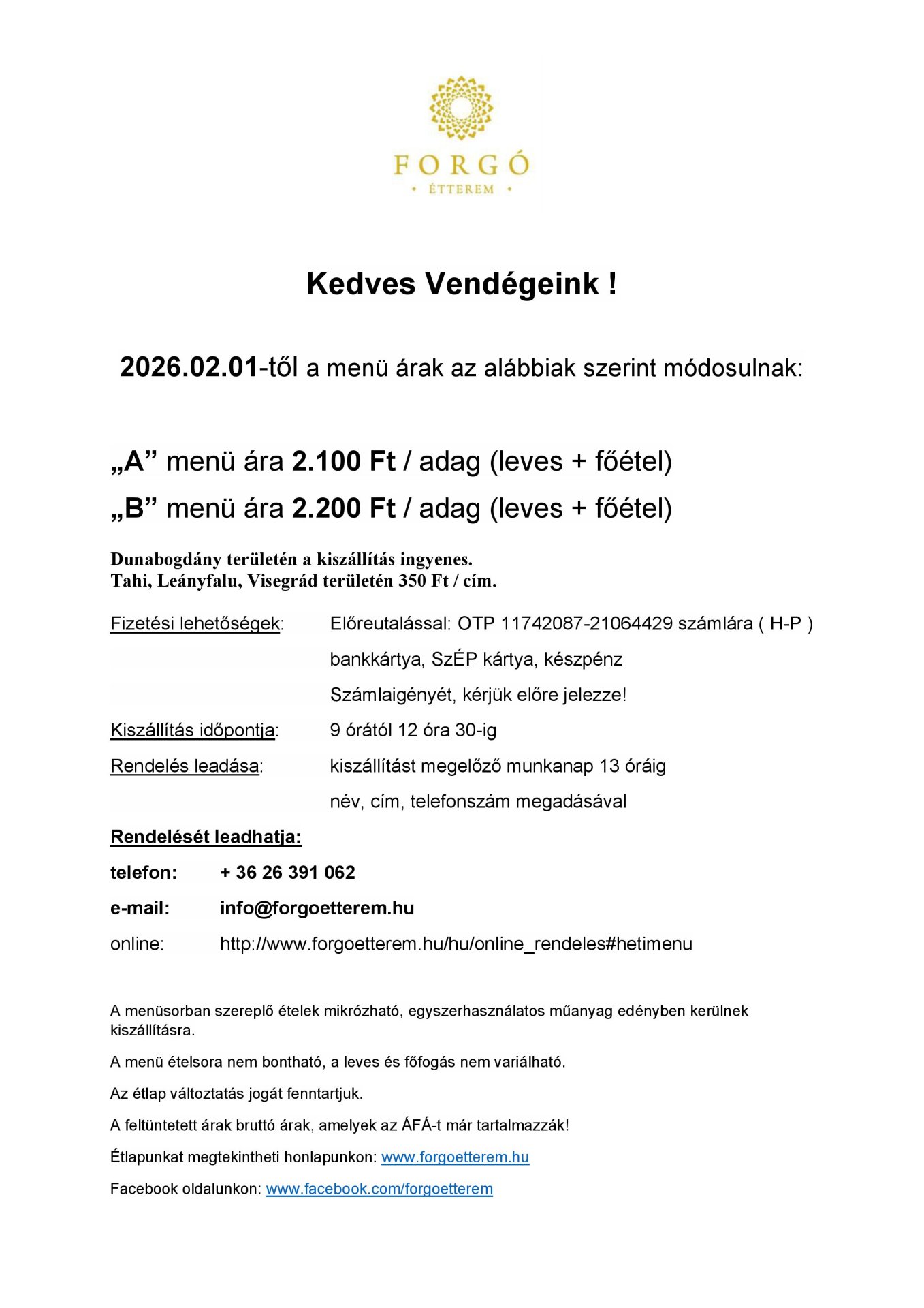 Dunabogdány is located in the magical Danube bend, 36 km from Budapest, just 5 km South of Visegrád. Forgó Restaurant was founded by the Jakab family in 1988, in the middle of the Swabian village, 30 meters from the main road, right next to the sandy beach, with a beautiful view to the Danube. Behind the village, the Pilis Mountains rise. The river Danube is clean on this stretch, its sandy beach is suitable for swimming and various water sports, therefore many people come here in the summer. The marked tourist routes of the Pilis Mountain range start from the village.